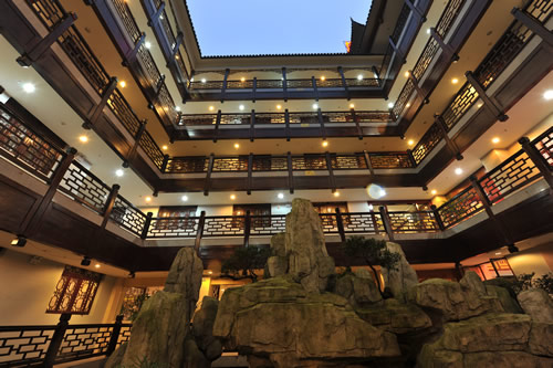 鳳凰鳳廷國(guó)際大酒店建筑風(fēng)格突顯湘西民族民居的建筑風(fēng)格。以苗家和土家的吊腳樓和四合院為基本元素,用現(xiàn)代居家觀念進(jìn)行創(chuàng)新解構(gòu)和重組,營(yíng)造出一種讓外來(lái)人能感受到的原汁原味的湘西氣息,讓湘西本土人于陌生中感到親切、于熟悉中感到新鮮的韻味。