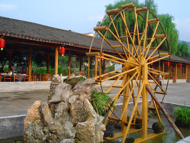 張家界武陵源大作坊美食城是一家集垂釣休閑,特色餐飲,夜市為一體的大型風(fēng)味美食城!位于風(fēng)景如畫的武陵源風(fēng)景區(qū)區(qū)政府所在地,占地3000多平方米,可同時(shí)容納400多人就餐。這里也是景區(qū)內(nèi)匯集土家美食,苗家美食的第一坊!美食城按純木四合院建造,內(nèi)設(shè)酒作坊,豆腐作坊,臘味作坊,糍粑作坊,有垂釣區(qū),燒烤區(qū),菜品自助區(qū),客人廚藝展示區(qū),農(nóng)產(chǎn)品展銷區(qū)等。酒作坊內(nèi)聘請了民間煮酒大師現(xiàn)場煮酒,你有機(jī)會可以現(xiàn)場吃到熱乎乎的頭鍋酒,酒坊內(nèi)有純米酒,包谷燒,高梁酒,有用野果泡制的各種果酒---燈籠酒,楊梅酒,彌猴桃酒等,更有特色的是把高梁酒放在正在生長的楠竹內(nèi),用竹內(nèi)竹膜的香味把酒增香,十二天就把竹子砍下再放養(yǎng)三天就好了,客人要吃現(xiàn)場鋸竹筒酒吃!豆腐坊也是聘請民間老農(nóng)現(xiàn)場用自制的石磨做豆腐,在這里你可以吃到真正有豆香味的原汁原味的石磨豆腐,和渣,菜豆腐,豆腐腦等豆制品!臘味作坊里有冬天用各種香料熏制的正宗湘西藏臘肉,臘豬頭肉,臘香腸,臘豬腳,各種臘制品臘野味等。糍粑坊每天在晚上人多用餐高峰時(shí)現(xiàn)場打滋粑,客人也可以自己參與打糍粑這個(gè)快樂的過程,想受過年時(shí)才有的熱鬧情景!在垂釣區(qū)里我們放養(yǎng)有很多野生魚類,有時(shí)間了你可以來這里休閑垂釣,得到的魚我們就會給你現(xiàn)場加工,有清沌的,紅燒的,青椒燜的,酸湯的,都很好吃哦。燒烤區(qū)里,我們高薪聘請了燒烤大師為你現(xiàn)場制做,你也可以自己動手,有烤羊排羊腿,各種串烤,烤全魚,烤全兔等,還有各種鐵板烤可以自己炒著吃!菜品自己選區(qū)里有各種山野菜,壇子菜,干菜,臘味等,有各種鮮活的魚類,河蛘,水魚,田螺,龍蝦等,有各種農(nóng)家的土雞土鴨等,有各種鮮活的野味等你來享受美味呢!客人廚藝展示區(qū)里老板特設(shè)制地幾口大鍋, 很有特色的是, 你可以自己親自下廚, 酸甜苦辣任您自由調(diào)配 。 煮好了, 大家就圍著這“灶臺”合一的飯桌享受張家界的美食了。(張家界的三下鍋是很有特色的,是邊煮邊吃的, 只是這“三下鍋”是“大型三下鍋”而已。到張家界旅游,吃張家界的“三下鍋”是一種獨(dú)有的旅游體驗(yàn),到大作坊吃“大型三下鍋”,則更將會為你的旅程增添一份難得的回味。農(nóng)產(chǎn)品展銷區(qū)里展示著當(dāng)?shù)鼗蛳嫖鞯貐^(qū)最暢銷的農(nóng)產(chǎn)品食品:正宗湘西鄉(xiāng)里臘肉,香腸,各種臘制品,洗車河霉豆腐,靈潔牌剁椒辣醬系列,菌油,正宗茶籽油,苗家酸湯,鄉(xiāng)里正宗葛粉,大壇湘西五糧液,竹簡敲敲酒,張家界茅巖霉茶,野生蜂蜜,高山葛粉,張家界第一山珍巖耳,葛根片等等!