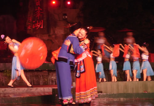 姑娘出嫁,為女人一生中最大的喜事,本應(yīng)充滿(mǎn)幸福、歡樂(lè)的氣氛。然而,舊時(shí)湘西、湘南、鄂西、川西(成都等地)、黔東(銅仁、凱里一帶)諸地,卻流行著一種與之完全相反情調(diào)的古老婚俗——“哭嫁”。也就是在姑娘“出閣”之前,不但新娘本人哭得很傷心,像淚人一般;而且,新娘的母親、姐妹以及姑媽、姨媽、舅媽及其他交往較多的女友,都要陪著新娘哭。湘西土家族哭嫁的風(fēng)俗尤為普遍、濃厚,不但哭嫁的時(shí)間較長(zhǎng)(少則十來(lái)天,多達(dá)個(gè)把月),而且哭嫁歌也保存得古樸、完整。 姑娘出嫁為什么要哭?哪有那么多的東西可哭?這是一種蘊(yùn)含甚為豐厚的人生禮俗,也是一種饒有興趣的婚俗事象。 俗話(huà)悅:“人不傷心不落淚。”姑娘出嫁之所以要哭,是因?yàn)樵谂f式婚姻制度下,女孩(尤其是勞苦大眾家庭的女孩)總是作為犧牲品“拋”(賣(mài))給夫家的,她們的身心受到極大傷害。因此,湘西等地的女孩在出嫁之前要哭泣,要呼號(hào),哭嫁歌就是感情發(fā)泄的最好表現(xiàn)方式。 哭嫁的源起 哭嫁的風(fēng)俗,不知道起源于什么時(shí)候。戰(zhàn)國(guó)時(shí)期,趙國(guó)的公主嫁到燕國(guó)去作王后,她的母親趙太后在臨別時(shí)"持其踵,為之泣,祝曰,必勿使返。"大約就是后來(lái)長(zhǎng)盛不衰的哭嫁風(fēng)俗的濫觴了。 這種風(fēng)俗,直至清末還盛行于四川農(nóng)村中,隨地區(qū)變化而大同小異。解放前,聽(tīng)老人們說(shuō),早些時(shí)候,沒(méi)有嫁而不哭的人家。如果出現(xiàn)嫁而不哭的姑娘,也會(huì)被鄰里看作沒(méi)有教養(yǎng)的人,傳為笑柄;相傳有出嫁姑娘不哭而遭母親責(zé)打的事,這位母親當(dāng)然算得上是入流導(dǎo)演了。 舊時(shí)宣講故事中,有花轎臨門(mén),父親強(qiáng)令哭《迎風(fēng)罵媒歌》的情節(jié),可知哭嫁是有歌詞的,帶有表演性質(zhì),原是用來(lái)渲染氣氛,以悲襯喜;不過(guò),因?yàn)榛橐鍪前k的,真哭真罵的也不會(huì)少。 抗日戰(zhàn)爭(zhēng)后期,風(fēng)氣較開(kāi),哭嫁之風(fēng)已不盛行,而老人們卻還在津津樂(lè)道,哭的方式是,從婚期前一個(gè)月的首日起,入黃昏,姑娘訴哭約一個(gè)小時(shí),其聲嗚嗚。十天以后,她的母親加入"陪哭";又十天以后,她的祖母加入陪哭。這家沒(méi)有諸姑姊妹,人們說(shuō),如果有的話(huà),也應(yīng)當(dāng)加入陪哭行列的。 哭嫁在川西叫"坐堂"。清代吉道人《味蔗軒隨筆·坐堂詞》云:"婚姻之禮,各省風(fēng)俗不同。然酌禮準(zhǔn)情,各省亦大同小異。凡男家娶婦先賦之詩(shī),謂之'催妝';女家親串頌女之詞,謂之'坐堂'。坐堂者,女當(dāng)喜期將近之先數(shù)夕,其諸姑伯姊,置酒為女祖餞,各述吉祥之詞,以為頌美,女則申己之意以答。女左右更有少女,則隨而嫻習(xí)者也。其詞要多鄙俚,然有音韻凄清,風(fēng)格遒勁,如古歌古謠者。羅江明府蔡,微服巡查鄉(xiāng)里,一日行至某處,值有女子歸,諸娣姒咸以諛詞頌女,女申意以答。忽風(fēng)吹句入耳,詞曰:'鳳凰落在桌子上,哪個(gè)女兒肯離娘'。一字一轉(zhuǎn),音韻凄其,誰(shuí)謂天籟之鳴,不在愚夫愚婦耶!"云云。吉道人姓周名際唐,成都人。吉道人記得明明白白,可惜他只記了一句哭嫁詞,難窺全貌。好在舊時(shí)坊間叢刻中有《訓(xùn)女哭嫁》一種,可見(jiàn)一斑。這本小書(shū)的目錄有《閨聲哭》、《娘訓(xùn)女》、《嫂哭妹》、《哭爹媽》、《哭哥嫂》、《花轎到屋哭》、《哭叔爺》、《哭兄弟》、《哭外公外婆》、《哭舅爺》、《拜香火哭》等等,編次有點(diǎn)凌亂,似乎隨手所記,未經(jīng)文人之手。遙想《詩(shī)》十五國(guó)風(fēng)未刪之時(shí),大約也不過(guò)如此吧! 閨聲哭 娘聽(tīng)后園鳥(niǎo)雀驚,要聽(tīng)房中女兒聲。 我娘當(dāng)門(mén)苦葛藤,手攀苦葛訴苦情。 我娘苦情苦過(guò)了,女兒苦情才起根。 ............ 桔子開(kāi)花葉子青,陽(yáng)雀開(kāi)聲我開(kāi)聲。 新打銅盆才裝水,新打剪刀兩面青。 娘不開(kāi)口我開(kāi)口,娘不開(kāi)聲我開(kāi)聲。 當(dāng)門(mén)一根木蓮樹(shù),目連樹(shù)上掛卷經(jīng)。 一本經(jīng)書(shū)背完了,未見(jiàn)我娘來(lái)開(kāi)聲。 虧了我娘睡得穩(wěn),爹媽眼淚貴如金。 哭爹媽 月亮彎彎照華堂,女兒開(kāi)言叫爹娘。 父母養(yǎng)兒空指望,如似南柯夢(mèng)一場(chǎng)。 一尺五寸把兒養(yǎng),移干就濕苦非常。 ............ 勞心費(fèi)力成虛恍,枉自爹娘苦一場(chǎng)。 哭兄弟 黑漆茶盤(pán)烏木頭,姐姐離娘弟不留。 留到姐姐吃你飯,留到姐姐穿你衣。 兄弟當(dāng)家掙家忙,嫁了姐姐買(mǎi)地方。 上頭買(mǎi)齊潼川府,下頭買(mǎi)齊遂寧鄉(xiāng)。 ............ 這個(gè)本子所記是川北的歌詞,以前所見(jiàn)的是川南,吉道人所記的是川西,川東,大約也不會(huì)大異的。遺憾的是,該書(shū)所記哭嫁詞雖有"只怨媒人莫良心"等語(yǔ),卻沒(méi)有列出"罵媒專(zhuān)目,大約是怕媒人太難堪了吧! 其實(shí),罵媒是哭嫁中必不可少的節(jié)目,也是最具反抗色彩的哭嫁歌詞。舊社會(huì),婦女無(wú)婚姻自由可言,由于"三從四德"的束縛,平時(shí)對(duì)于自己的終身大事幾乎不能置一詞,全由媒人和父母擺布;因此,這登花轎之前的"罵媒",便是難得的發(fā)泄機(jī)會(huì)。這早已反映在戲曲和民間