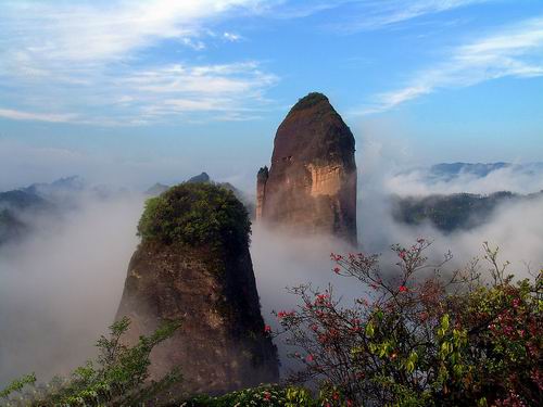 | 莨山,位于湖南省新寧縣境內(nèi)。南與桂林相連,北與張家界呼應(yīng),是國內(nèi)最為典型的丹霞地貌風(fēng)景區(qū),是國家重點(diǎn)風(fēng)景名勝區(qū),又是國家地質(zhì)公園,總面積108平方公里,轄紫霞峒、 扶夷江、駱駝峰、牛鼻寨、八角寨五大景區(qū),地質(zhì)結(jié)構(gòu)奇特,山、水、林、洞渾然一體。境內(nèi)有形神兼?zhèn)涞膶④娛⑽┟钗┬さ鸟橊劮、鬼斧神工?天下第一巷"、地造天設(shè)的鯨魚鬧海、氣勢磅礴堪稱亞洲第一的天生橋、高聳入云而又十分逼真的辣椒峰,這便是嘆為觀止的莨山六絕,這是大自然對莨山的恩賜,每一絕都舉世無雙。莨山還生長繁衍著銀杉、珙桐、華南虎、云豹、靈貓、大鯢等珍稀動植物,也為莨山的天然景色增添了無限靈動與生氣。這里出土有10萬年前的獼猴頭骨化石,有4500年前的新石器文化遺址,有清化農(nóng)民起義的寨堡,有晚清重臣劉坤一、劉長佑、江忠源的宗祠、墓葬,有異彩紛呈的民族風(fēng)情,有膾炙人口的華采詩賦,明代縣人陳永猷留下了"夫夷(新寧古稱)勝景天成就,攝杖歸來入夢頻"的美譽(yù),著名詩人艾青留下了"桂林山水甲天下,莨山山水賽桂林"的喟嘆。