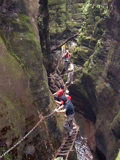 坐龍峽圖片 坐龍峽風(fēng)景區(qū)位于古丈縣河西鎮(zhèn),與“芙蓉鎮(zhèn)”--王村一水之隔。經(jīng)由300萬年大自然的風(fēng)吹、水蝕而成,一直隱逸于湘西茫茫十萬群山之中。它長約3500米,最大高差達300余米;寬處不足丈余,窄處僅容一人通過;谷內(nèi)絕壁縱疊,溪瀑橫懸,崖樹斜逸,異草遍坡。