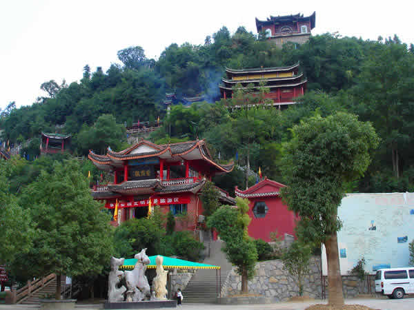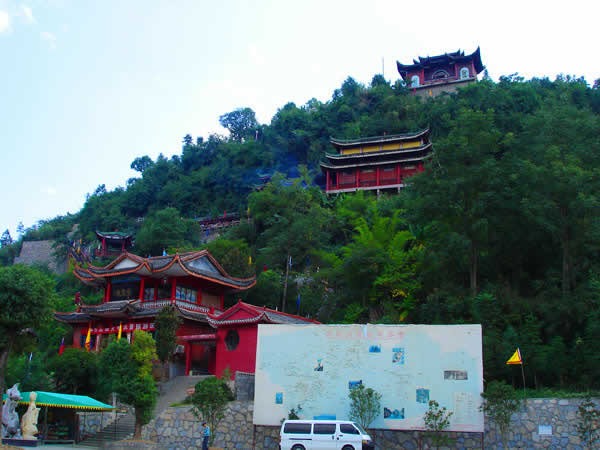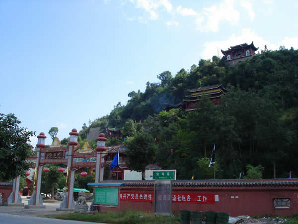 紫霞觀 紫霞觀始建于明朝嘉靖年間,近500年的歷史,在戰(zhàn)亂時期收到不同程度的破壞。紫霞觀是1992年因旅游事業(yè)的發(fā)展,教徒的信教,經(jīng)政府的批準(zhǔn),由各地的善男信女共同捐資,當(dāng)?shù)卣畵芸顢U(kuò)建起來的。道觀共有大小殿廟30余座,計5殿、3宮、2亭、2廟、1閣、八仙山、仙人足跡石、中華同心鎖等景點(diǎn)。中國著名書法家沈鵬先生為紫霞觀題寫了觀名,觀內(nèi)有國內(nèi)外著名書法家的題詞、碑刻等宗教文物,以及老子教祖講經(jīng)說法渡化圖一百余幅。