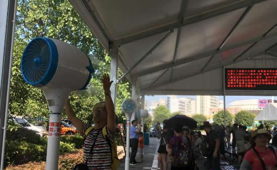 為更好的為游客防暑降溫,天門山景區(qū)特別在索道站、山門等候區(qū)增設(shè)大型遮陽棚,作為游客等候休息區(qū),并在等候區(qū)內(nèi)安裝數(shù)十個室外冷霧降溫風(fēng)機(jī)和直飲水點(diǎn)。