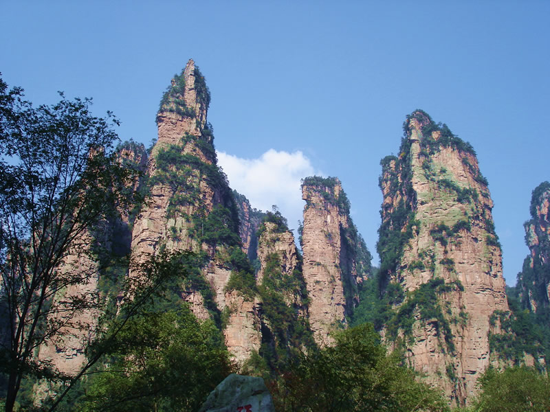 上 午: 導游或者司機在張家界機場或車站或者酒店接團。旅游車前往中國第一個國家級森林公園——【張家界國家森林公園】(約40分鐘車程,門票245元+5元景區(qū)保險已含)。游覽大氧吧廣場(每立方厘米空氣中含8-10萬個負氧離子),登海拔1200米、張家界最大的凌空觀景臺——【黃石寨景區(qū)】(黃石寨可以乘索道上下,也可以徒步上下。如果選擇乘坐索道,單程65元/人、雙程118元/人自行購買)。黃石寨山頂千山萬壑盡收眼底,沿著山頂環(huán)寨游道行走,可欣賞到許多絕美的自然風光,沿途有六奇閣、摘星臺、雙門迎賓、五指峰、霧海金龜、天然壁畫、黃石松、回音壁、九重壁等景點;